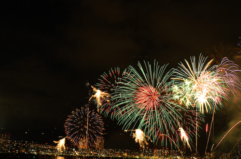 次の課題は、どこまで1枚に写し込む花火を選べるか、整然とした構図に出来るか、だと思っています。